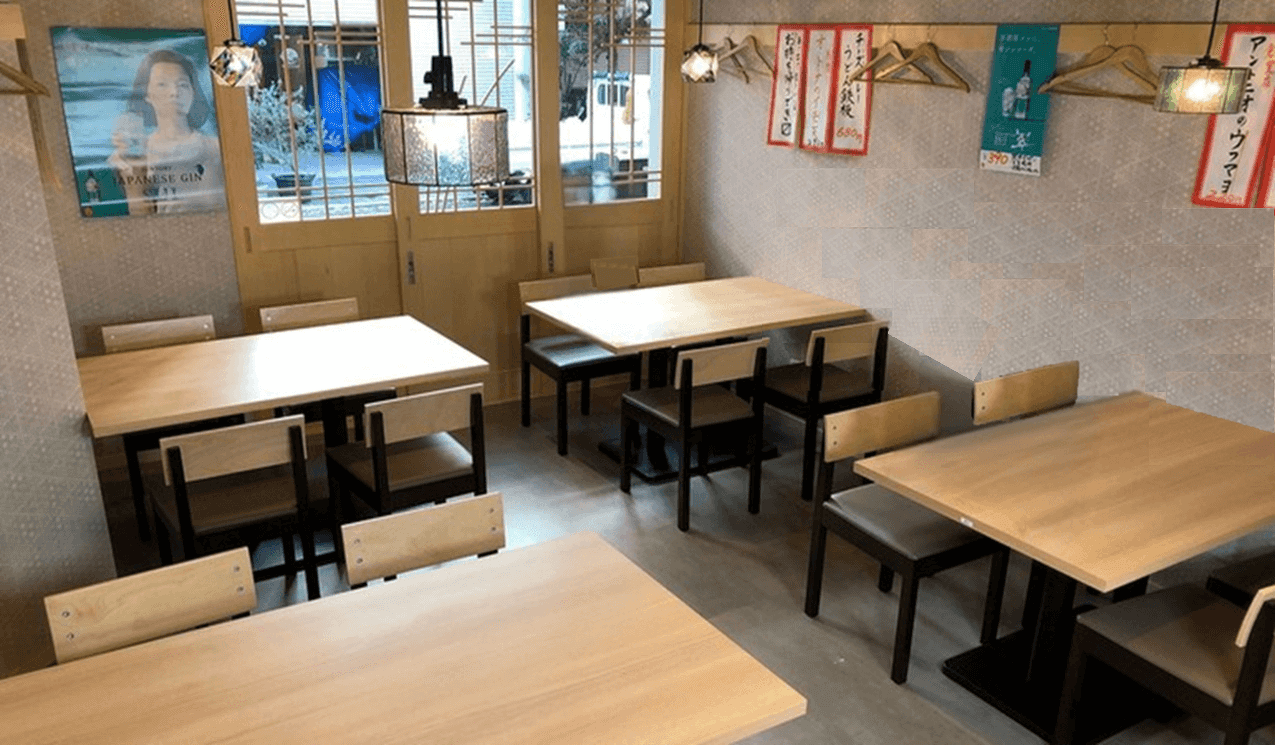 すっきりとした明るい店内の大衆酒場です。急な集まりや女性同士でも気兼ねなくご利用いただけます。